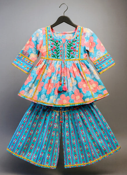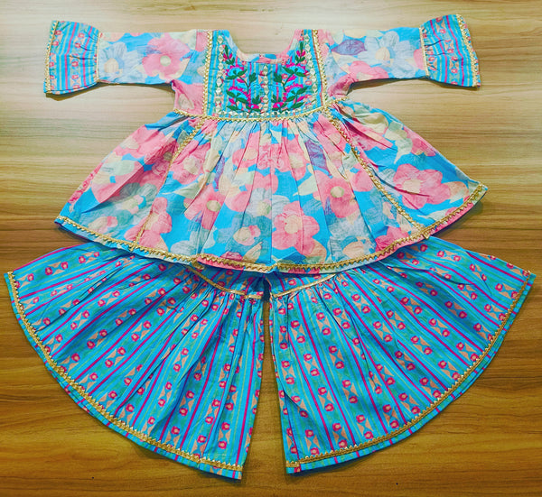 Kurti And Sharara Set embroidery work 💙 🪡-S1060