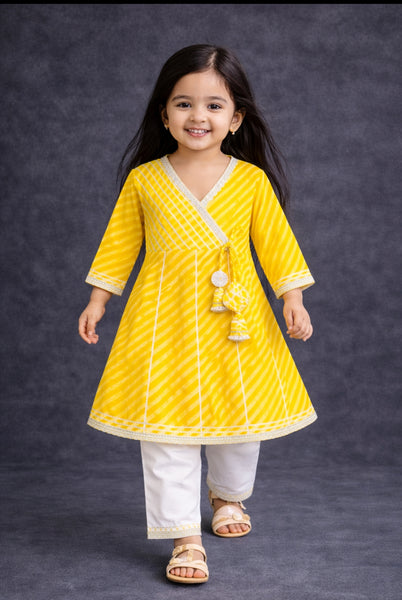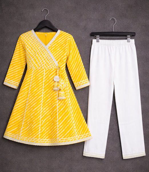 Anarkali kurta with white pant lehariya print 🍋-S420